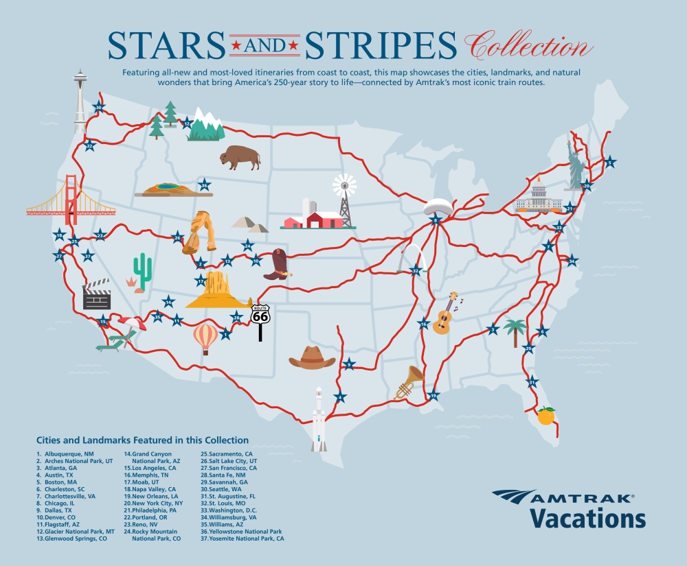 View and download the Amtrak Vacations Stars and Stripes Collection Map.